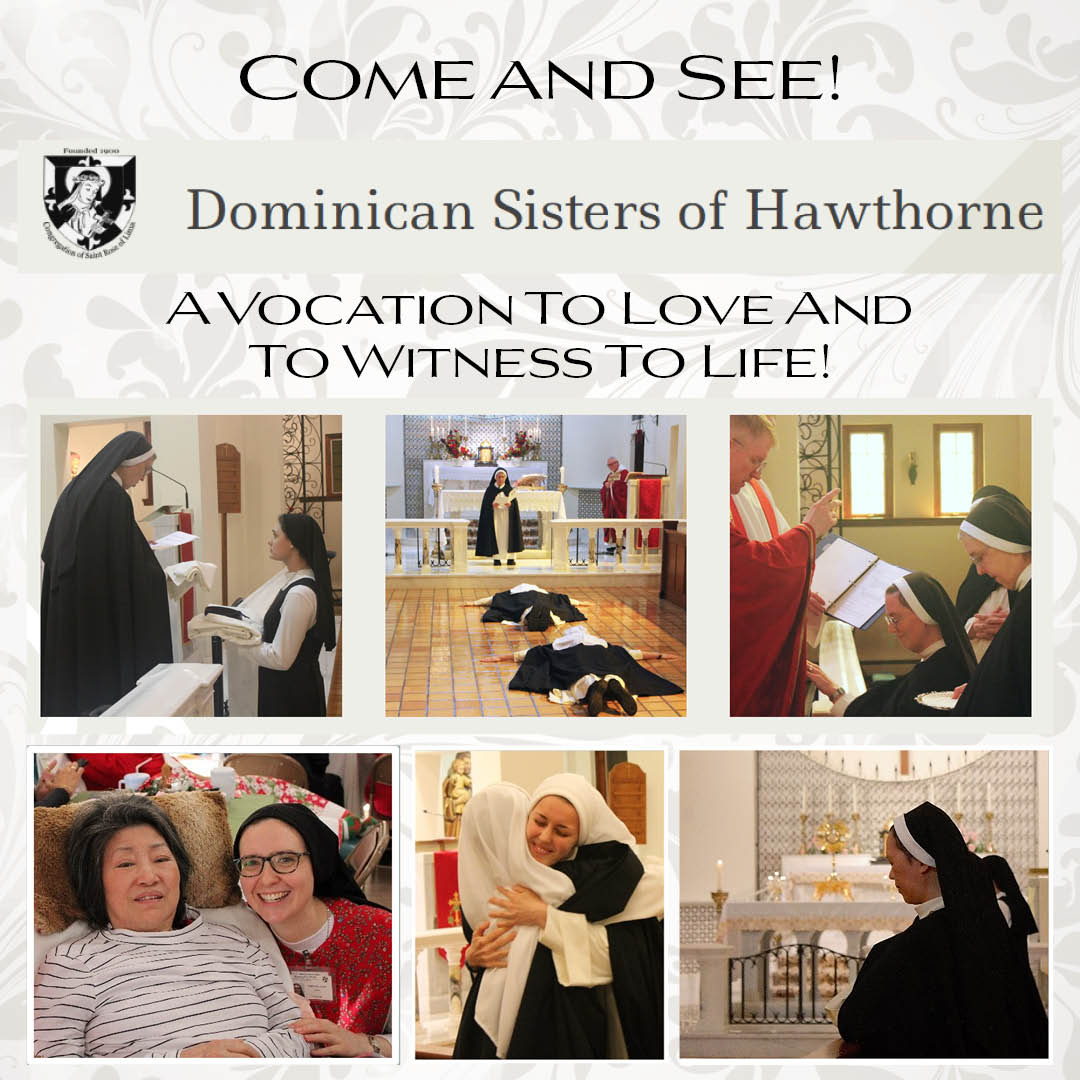 Women (ages 18 - 40) who are discerning a religious vocation are invited to come experience the life and charism of the Dominican Sisters of Hawthorne. Those attending join in our community prayers, witness our apostolate and meet some of our sisters.