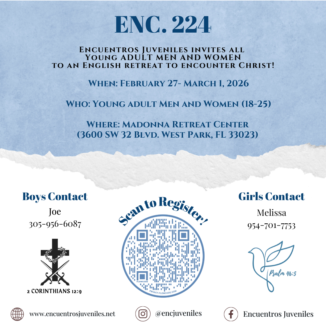 Encuentros Juveniles invites all young adult men and women (ages 18-25) to an English retreat from February 27- March 1 to encounter Christ!