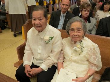 Meliton and Magdalena Auza, parents of Archbishop Bernardito Auza, papal nuncio to the United Nations, were celebrating their 70th wedding anniversary at the St. Valentine's Day Mass at St. Mary Cathedral.