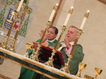 The couples came early to take their picture with the archbishop. Among them were Meliton and Magdalena Auza, celebrating their 70th wedding anniversary. Their son was there, too, concelebrating the Mass: Archbishop Bernardito C. Auza, former apostolic nuncio to Haiti and current apostolic nuncio to the United Nations.