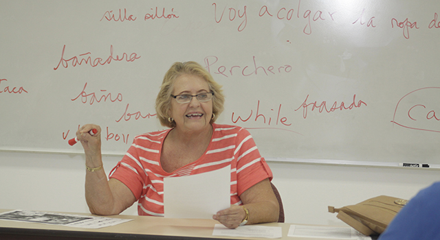 Lydia Hoyo teaches pronunciation during one of the daily Spanish language classes that are part of SEPI's annual summer immersion course in Spanish language and culture.