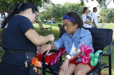 To pass the time, some boys rode their skateboards on the concrete or tossed footballs in the field. Lola, a face painter, also was on hand to ply her trade on the children.