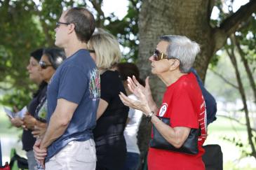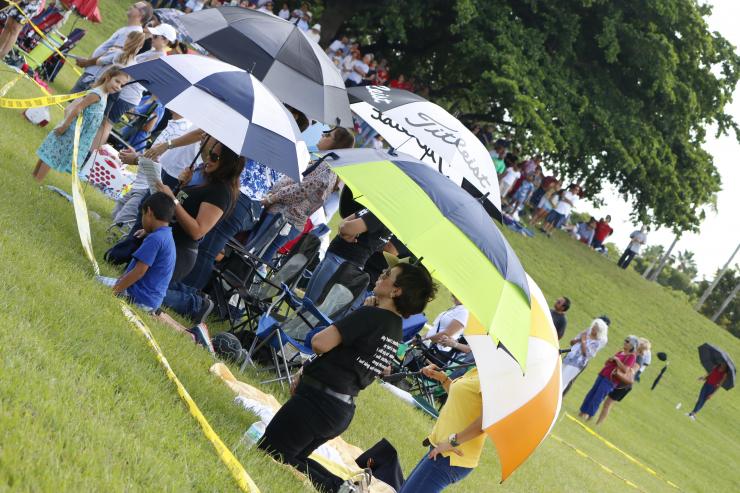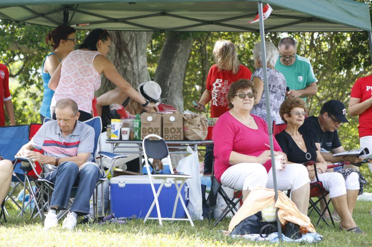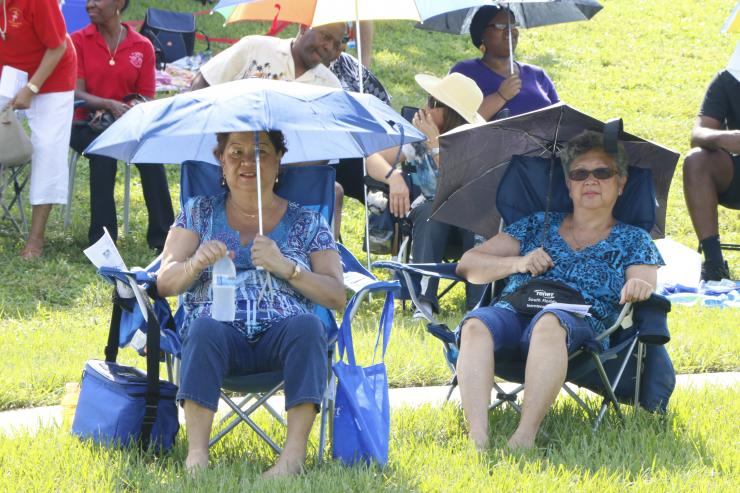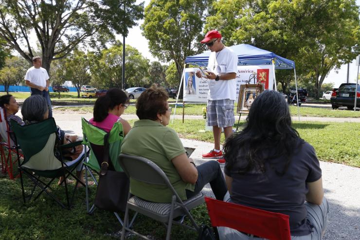 The 400 people in attendance began arriving around 9 a.m., carrying chairs and blankets, coolers and umbrellas � and some, even pup tents. They came from as far north as Parkland, on the northwestern fringe of Broward County, and as far south as Miami's St. Dominic Church, which brought a sizable contingent.