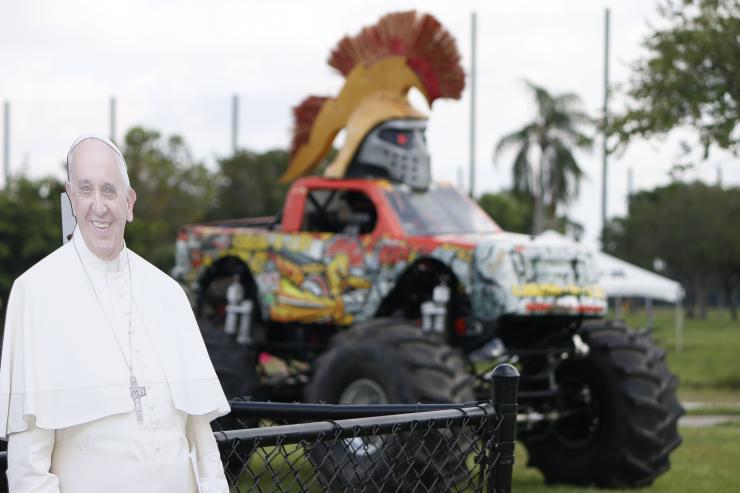South Florida’s mini-version of the World Festival of Families also featured Pope Francis � in cutout form. He didn’t seem to mind as dozens posed next to him for photos and the roar of motorcycles and Kid Monster Trucks enveloped him around mid-morning.