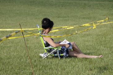 Susan Frezer of St. Elizabeth Ann Seton Church in Coral Springs, came early and, bucking the trend, sat right up front in the open field.