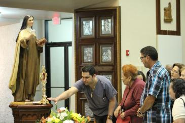 In celebration of the 500th anniversary of the birth of St. Teresa of Avila, an image of the saint, along with a relic, were brought out for the celebration Mass, which took place Oct. 15 at Immaculate Conception Church in Hialeah.