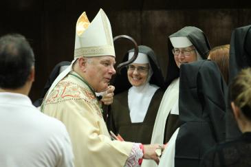 After celebrating Mass, Archbishop Thomas Wenski stops to greet Carmelites of the Most Sacred Heart of Los Angeles who staff St. Theresa School in Coral Gables and Archbishop Coleman Carroll High School in Miami.