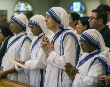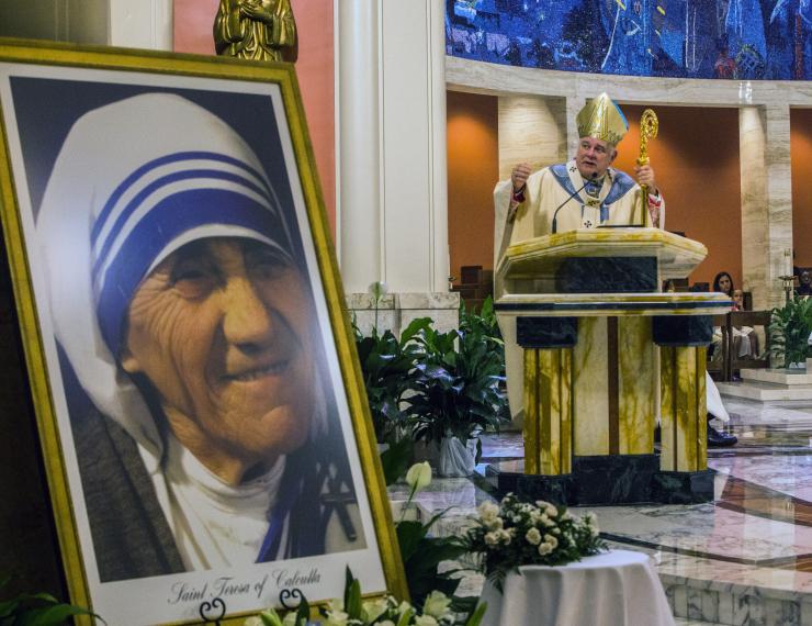 Varias órdenes de religiosas, seminaristas y otras personas llenaron la catedral para la Misa. En Roma, pocas horas antes, el Papa Francisco reconoció oficialmente a la Madre Teresa como santa, Santa Teresa de Calcuta.