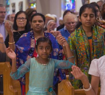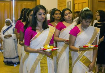 Los miembros de la parroquia Our Lady of Health Syro-Malabar, en Coral Springs, sede del Apostolado de la India, participaron en la Misa llevando la tradicional ofrenda de flores a las gradas del altar.