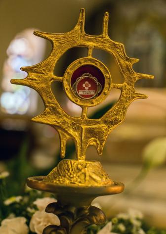 Después de la Misa, muchas personas congregadas se acercaron a besar una reliquia que contiene una gota de sangre de la Madre Teresa.