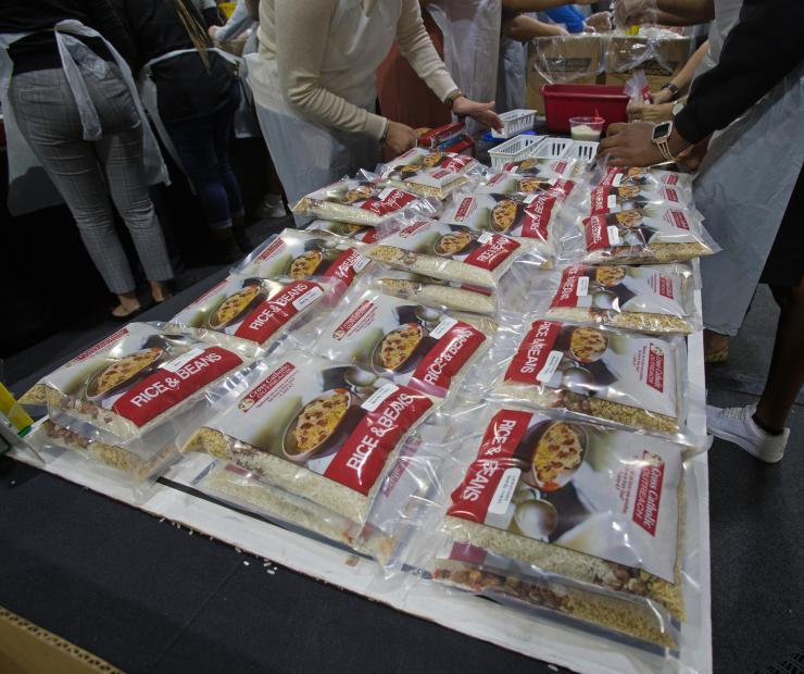 Berlande Richard, 19, a Barry University nursing student, seals a bag shut while assembling "40,000 Meals in 4 Hours," Nov. 8, 2021. The meals were to be distributed by Cross Catholic Outreach to the poor in Haiti and South Florida.