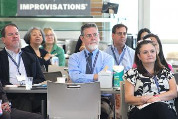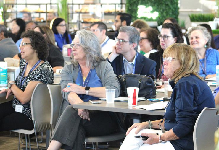 Catholic school principals and faculty laugh during a session led by Donald Edwards, associate superintendent of Catholic schools for the Archdiocese of Miami, at the Bridging the Gap Conference at St. Brendan High School in Miami, Sept. 26, 2025.