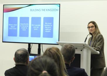 And while financial giving is essential to the Church, time and talent are also important to the mission, as emphasized in this year’s keynote, given by Andreas Widmer, associate professor of entrepreneurship at The Catholic University of America’s Busch School of Business, entrepreneur, author, business coach, and former Swiss Guard. He encouraged participants to imitate collaboration in their work in the same way the Holy Trinity collaborated to create the universe and mankind.