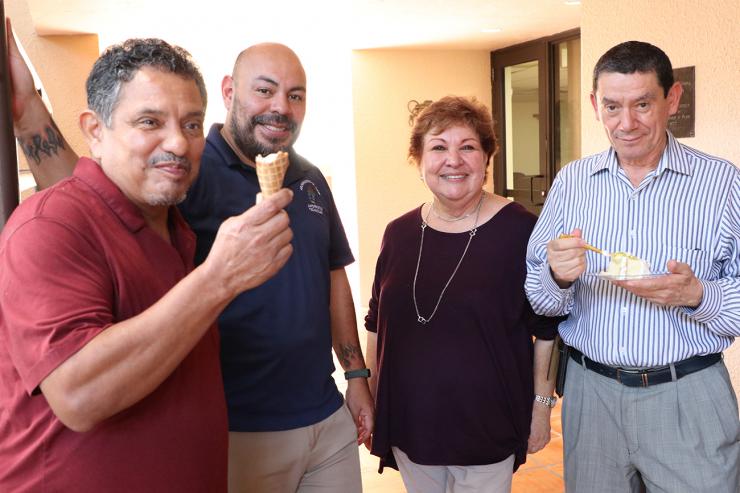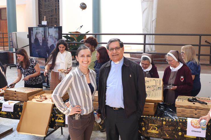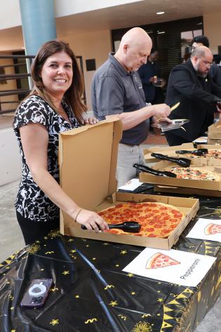 After Mass, the Pastoral Center employees celebrated with the archbishop with pizza because “the archbishop himself requested a pizza party with ice cream,” said Janet Millian, payroll manager in the archdiocesan Human Resources Office, one of several offices that collaborated in organizing the event.