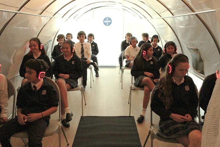 At St. Louis’s media center, transformed into Havana Airport, a sixth-grade class was welcomed by actors portraying Pan American Airlines staff. Each student received a small wooden figure named Eduardo and then boarded a recreated cabin where they “flew” to Miami.