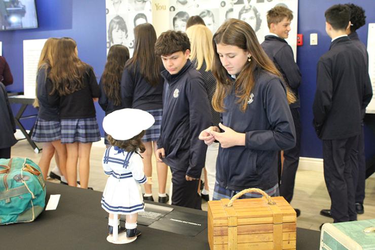 St. Louis Covenant School students look at artefacts during the "Childhood in Exile: Operation Pedro Pan 2026" showcase, curated and hosted at St. Louis on March 16, 2026.