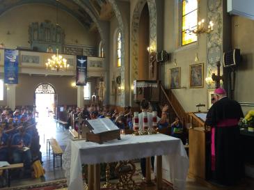Archbishop Thomas Wenski preaches a third and final catechesis for the English-speaking pilgrims at Mary Help of Christians Church on the outskirts of Krakow, Poland for World Youth Day 2016.