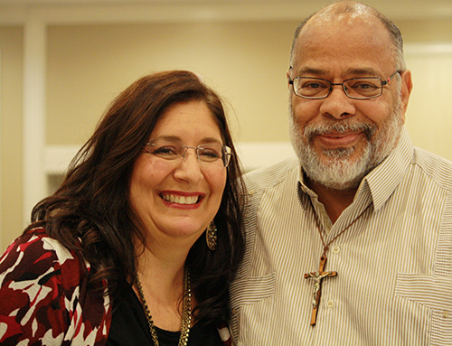 Keynote speaker Donna Gardner, Rachel’s Vineyard coordinator for the Diocese of Palm Beach, poses with Project Joseph counselor Joseph King.