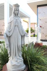 At the center of the Resurrection Complex is a courtyard and garden with a gazebo and benches for visitors. Four granite statues of the Virgin Mary, depicted as Our Lady of Lourdes, Our Lady with the Child Jesus, Our Lady of the Miraculous Medal, and Our Lady of Fatima, are also found here.