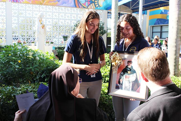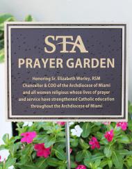 Working alongside her team, Aloma had the area surrounding the statue revamped into the new Prayer Garden. Dedicated Oct. 23, 2025, the garden is a tribute to Sister Elizabeth Worley, chancellor for administration and chief operating officer of the Archdiocese of Miami, and the women religious whose prayers and service have strengthened Catholic education in the Archdiocese of Miami.
