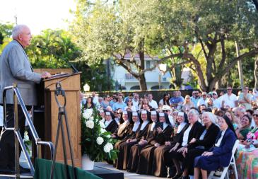 Three Sisters of St. Joseph of St. Augustine, the congregation that established the school as St. Joseph’s Academy in 1925, were in attendance: Sister Elizabeth Worley, chancellor for administration and chief operating officer of the Archdiocese of Miami; Sister Kathleen Carr, general superior; and Sister Stephanie Flynn, assistant general superior. They were joined by more than 10 Carmelite Sisters, the religious community that currently teaches and administers St. Theresa School.