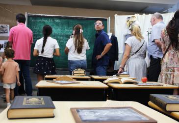 In the 1920–30s room, attendees could find a 1926 Spanish-language edition of the New Testament, a military cap from 1939 and a brick from one of the school’s earliest buildings. An Argus projector from the 1950s and a boombox from the 1980s were just two of the other objects featured along the History Walk, signifying the school’s continuity.