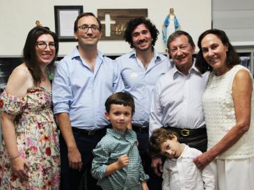 The Mario Pino STREAM Laboratory at St. Theresa Catholic School was funded by the family of the late alumnus. The family members are pictured at the ribbon-cutting ceremony Nov. 16, 2025. In the back row, from left: Melanie Wahl; Joseph S. Pino; Bernard “Benny” John Pino III; Bernard “Ben” John Pino Jr.; and Maria Garcia-Otero. Front row: Sebastian and Griffin Pino, who attend St. Theresa School.