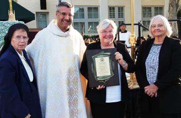 The archbishop praised two religious communities held dear by the school, who were recognized during the event with commemorative plaques: the Sisters of St. Joseph of St. Augustine and the Carmelite Sisters of the Most Sacred Heart of Los Angeles.