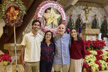 The Anrecio family poses with a parol for the Archdiocese of Miami after Mass celebrating the final night of Simbang Gabi at St. David Parish in Davie Dec. 23, 2025. From left are son Lucas, mother Runa, father Raymond and daughter Sofia.