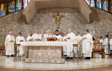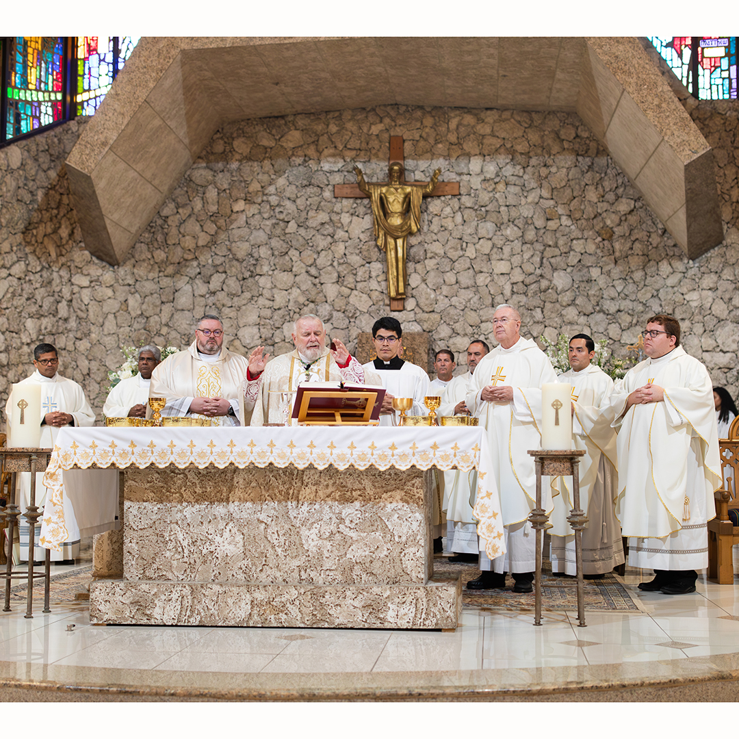 Archbishop Thomas Wenski celebrates the installation Mass of Father Ryan Saunders as pastor of St. David Church in Davie, Oct. 12, 2025. Several archdiocesan priests concelebrated with him.