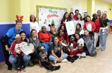 MIAMI| More than 200 children and staff from Catholic Charities Notre Dame Child Development Center in Little Haiti welcomed a caravan of “Santa’s helpers” from Our Lady of Lourdes Academy on Dec. 16, 2025.