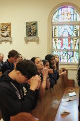 Students from St. Thomas Aquinas High School, Fort Lauderdale, pray during the Chrism Mass on March 31, 2026 at St. Mary Cathedral, Miami.
