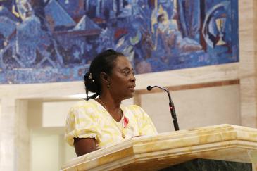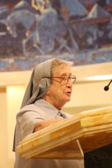 Sister Carmen Álvarez, director of religious education at Corpus Christi Church in Miami, proclaims the first reading during the chrism Mass at St. Mary Cathedral, March 31, 2026. (ROCIO GRANADOS | LVC)