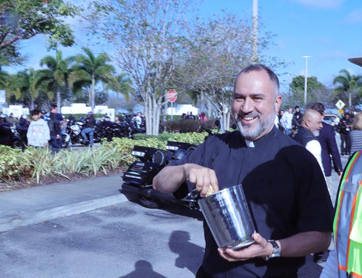 The annual event draws riders from across Florida and includes clergy participation. Among those riding this year were Father Matthew Gomez, dean of the propaedeutic program at St. John Vianney College Seminary in Miami, and Father Julio de Jesús, pastor of St. John XXIII Parish in Miramar.