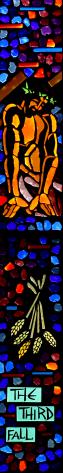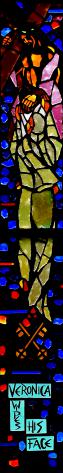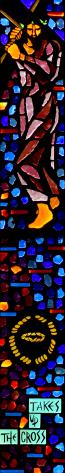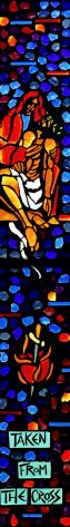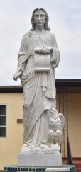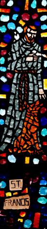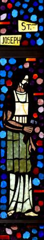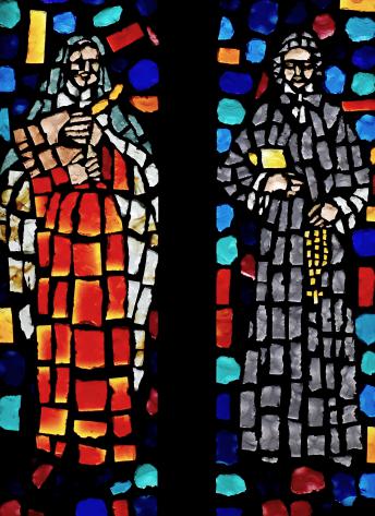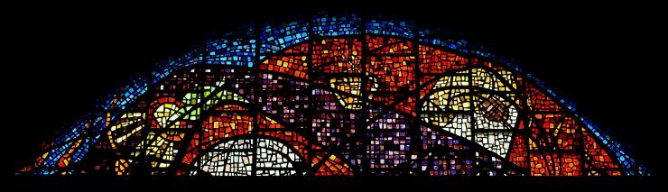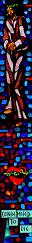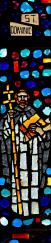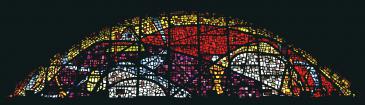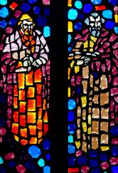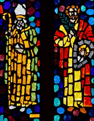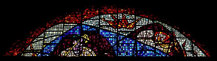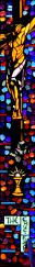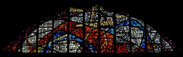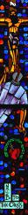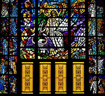 Above the four doors of the front entrance is a huge faceted glass window of St. John, with his symbolic eagle. Flanking the main window are 10 smaller ones depicting episodes from his gospel.