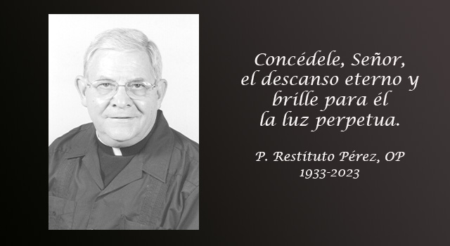El P. dominico Restituto Pérez: Nació el 29 de mayo de 1933; fue ordenado el 4 de junio de 1960; murió el 13 de febrero de 2023.