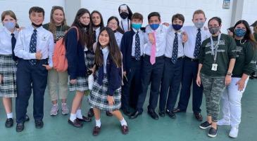 During the Oct. 20, 2021 event, eighth-graders from a dozen Catholic schools in Miami-Dade County tested their knowledge in 13 subjects, ranging alphabetically from art to visual and performing arts, and including: English, Spanish, law and global business, math, science, social studies, general knowledge, STEM, physical education, medicine, and religion.