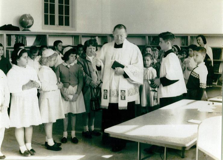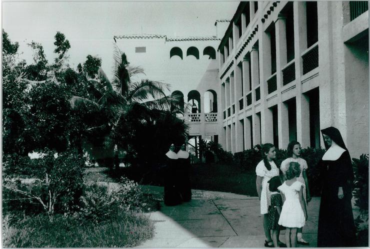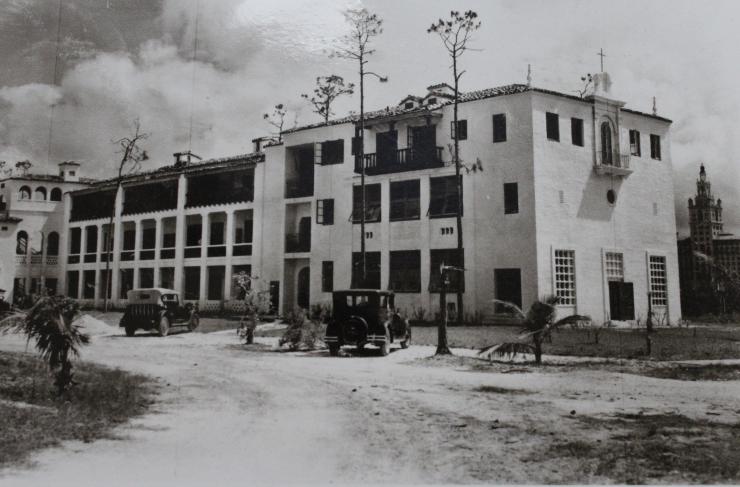 Originally founded in 1925 by the Sisters of St. Joseph of St. Augustine as St. Joseph’s Academy, the school began as a primary and secondary school. Historic photos show a solitary school building across from the church (completed in 1926), surrounded by pine trees and dirt roads, and the Biltmore Hotel in the distance. The school has survived the catastrophic 1926 hurricane, the Great Depression, World War II, and more.