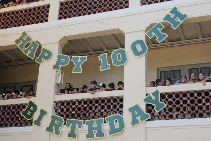 At the centennial bash, the school’s backyard buzzed with energy as students enjoyed bounce houses, an inflatable obstacle course, arts and crafts, games, and a birthday sing-along topped with cake and cupcakes. Donations from Burger King and Kona Ice helped round out the treats.