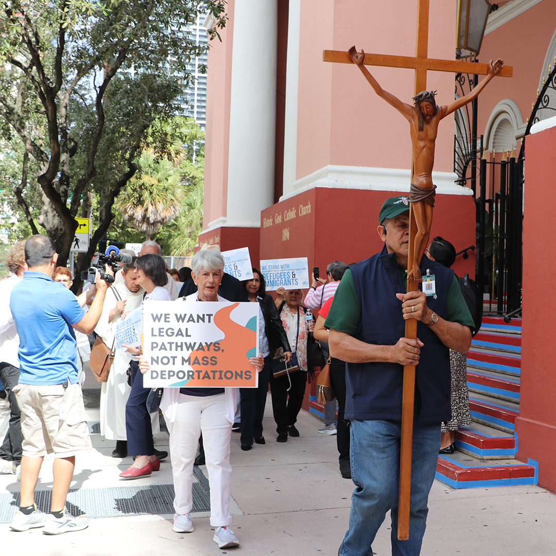 On the feast day of St. Frances Xavier Cabrini, patron saint of immigrants, on Nov. 13, 2025, a Mass for immigrants was celebrated at Gesu Church in downtown Miami. Several dozen Catholics from Miami, members of various Catholic organizations, attended the Mass to show their support for those who are suffering. After Mass, a pilgrimage left the parish and walked to the nearby immigration court.