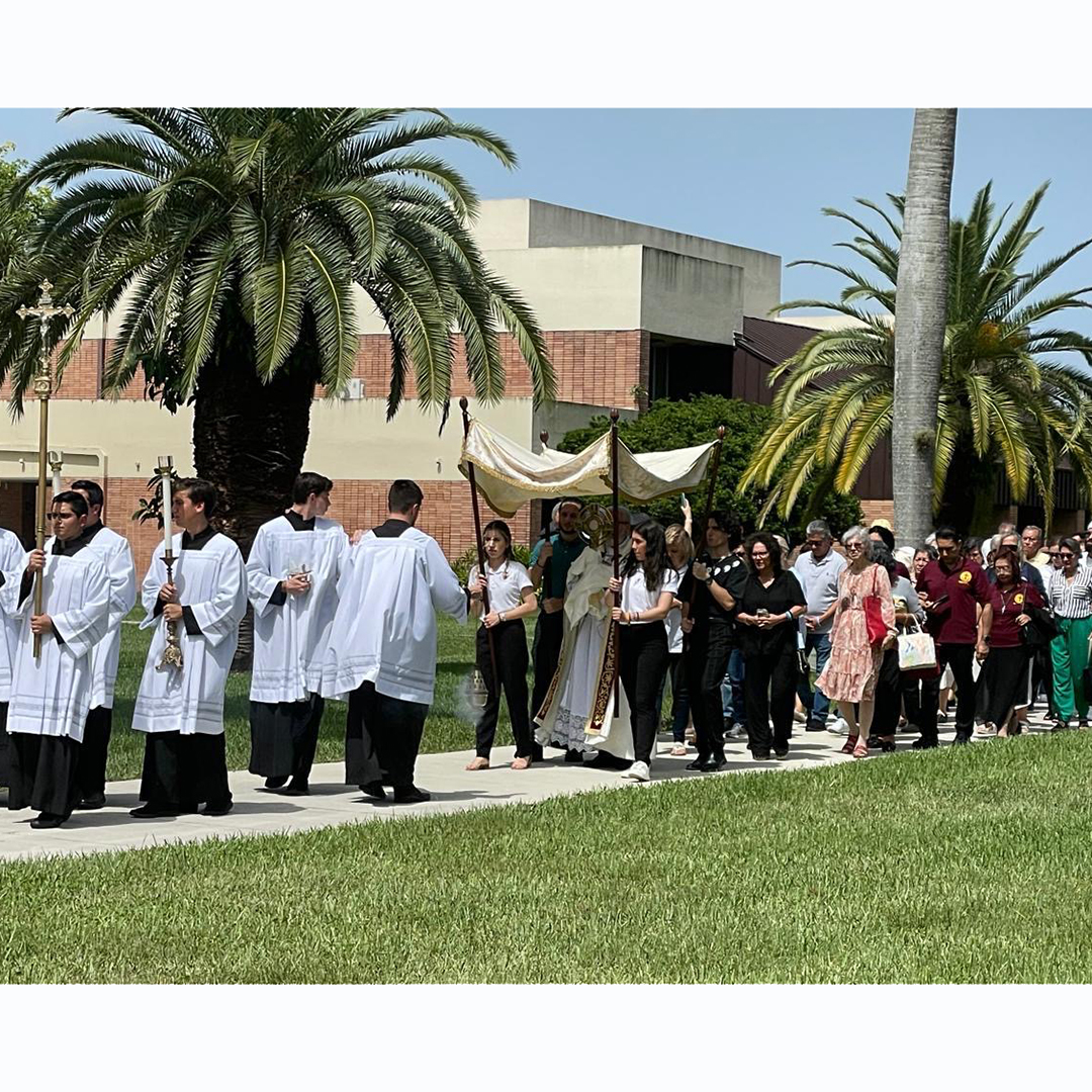 As part of the small Eucharistic Congress in the Archdiocese of Miami, more than 200 participants of the 14 Hispanic Apostolic Movements and other archdiocesan groups, processed with the Blessed Sacrament July 20, 2024, on the grounds of St. John Vianney College Seminary in Miami.