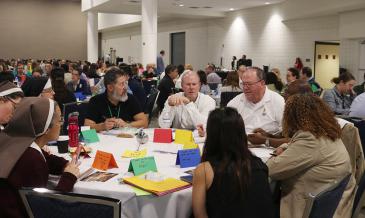 Gabriel Cambert, archdiocesan associate superintendent for government programs of schools, said they plan several professional development days, but “we haven’t held to this magnitude in severalyears.” Teachers were intentionally seated at tables with similar grade levels and subject areas and from different schools.