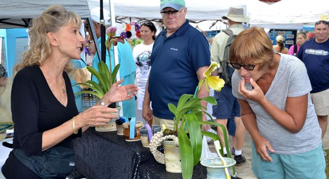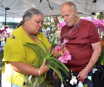 Juanita Contreras talked orchid care with customers at her 12th annual appearance at the San Pedro festival. It's where her customers "hang out," she said.