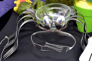 - Mark Wile of Key Largo grinned as he modeled a fork, knife and spoon that appeared to pierce his head. It was among other metal items -- including a butterfly made of spoons and a crablike salsa bowl holder made of forks -- made by his daughter, Megan.