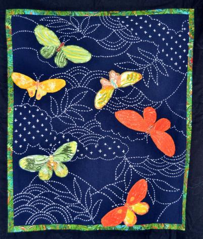 - A butterfly-laced artwork followed the centuries-old Japanese Sashiko style. It was one of several bed covers displayed by the Florida Keys Quilters guild.