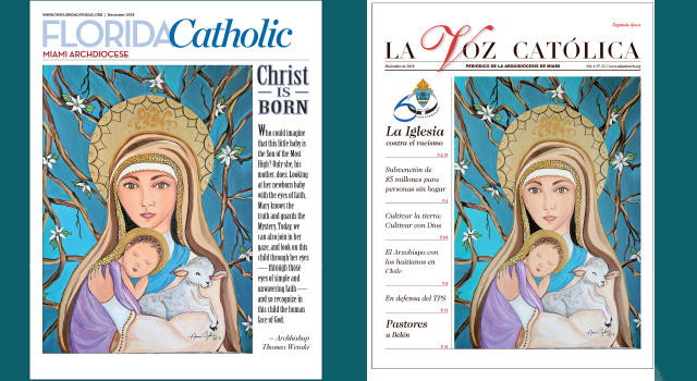 South Florida Catholic artist Noris Capín created this image, which she entitled "The Golden Virgin with Jesus," for the Miami edition of the Florida Catholic and its sister newspaper, La Voz Católica. Capín was born in Cuba and arrived in the United States in 1969. In addition to her work as an artist, she has written two books and is a columnist for "En USA," a Spanish-language newspaper.