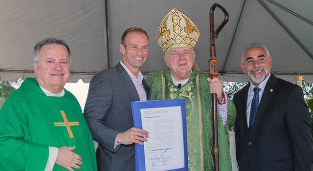 As part of the celebration, Miami Beach Commissioner Michael Grieco and Miami Beach City Manager Jimmy Morales, himself a graduate of St. Joseph School, presented the archbishop and pastor with a proclamation naming Feb. 12, 2017 as St. Joseph Church Day in the city of Miami Beach.