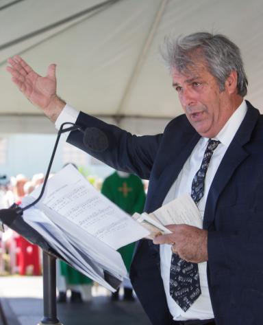 In recent years, St. Joseph has become home to people from many different cultural groups, especially those from South and Central America and the Caribbean. Members of the church’s various ethnic communities carried flags of their country of origin from the church to the Mass under the tent.