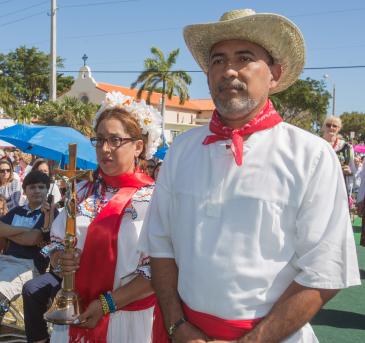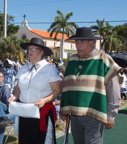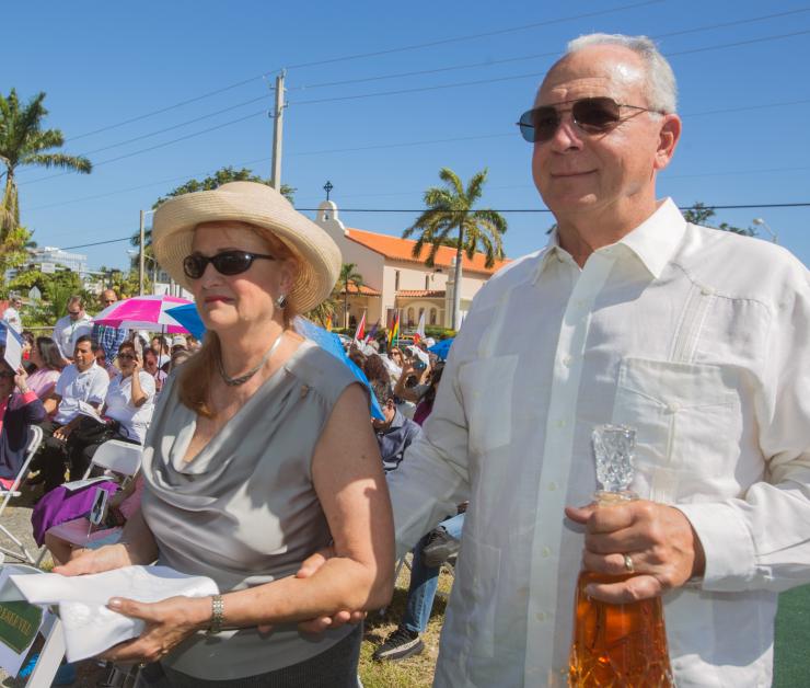 Archbishop Thomas Wenski concelebrated the anniversary Mass Feb. 12, along with Father Juan Sosa, the parish’s current pastor, and other priests. The celebration � the only Mass at the parish that Sunday � brought the entire community together and took place in a vacant lot under a tent across the street from the church.