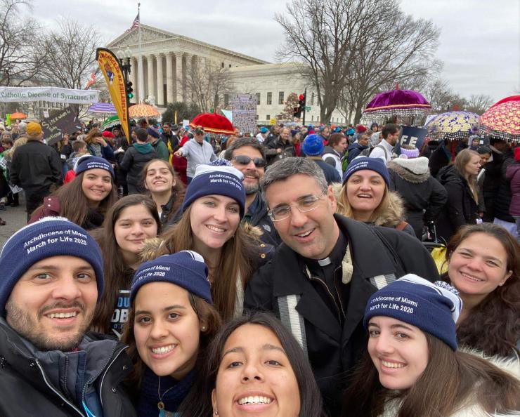 Little Flower's March for Life group speak with a woman and her baby on the D.C. Metro. Izzy Rennella reports: "Her baby would turn 1 on Monday. We then, in very Miami fashion, proceeded to sing happy birthday to the baby."